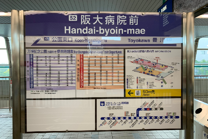 大阪モノレール彩都阪大病院前駅から万博記念公園駅行きの電車(2駅で到着)に乗車。