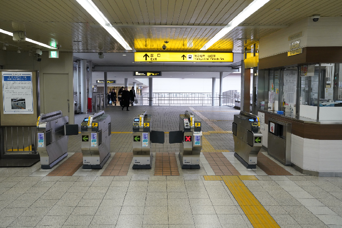 彩都線彩都西駅から万博記念公園駅行きの電車(4駅で到着)に乗車。