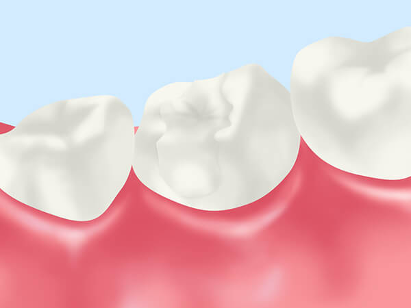 セラミック素材でつくられた詰め物です。自然な白さと透明感を再現でき、まわりの歯との違和感もありません。