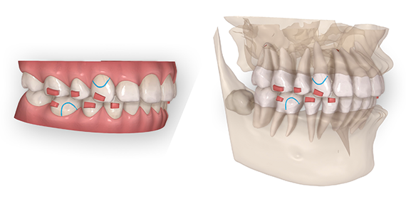 マウスピース矯正では、治療開始前の精密検査のデータをもとに、3Dの治療計画ソフトウェアを使って、治療開始から治療終了までの歯の動きを3Dシミュレーションで見ることができます。