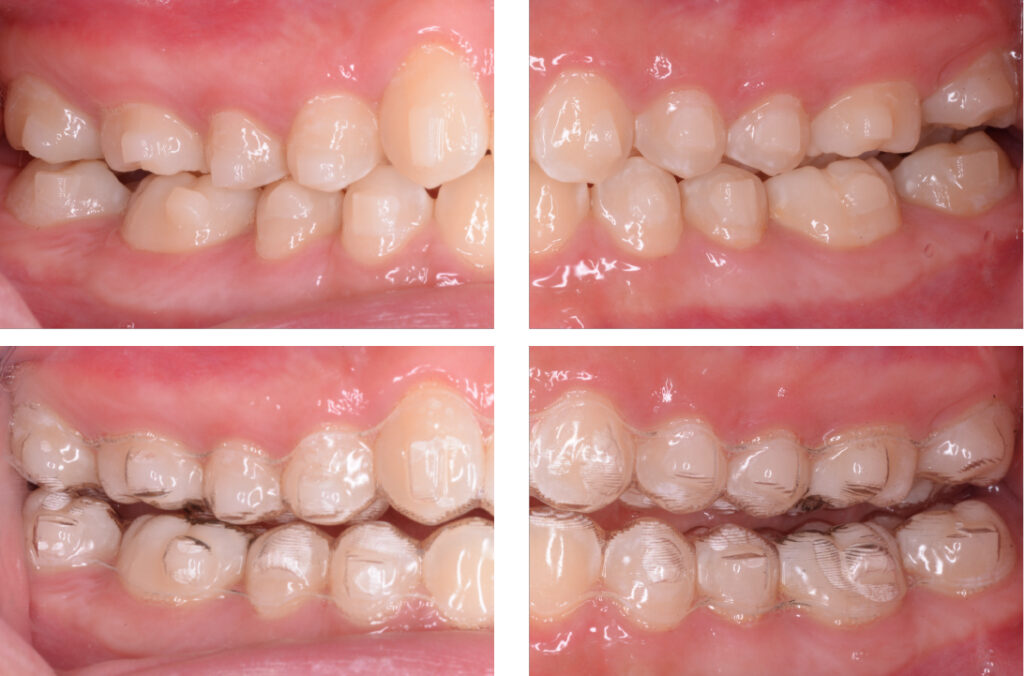 シミュレーションと実際の口腔内を見比べて、右上の奥歯が予定通り後方に移動していることを確認しました。