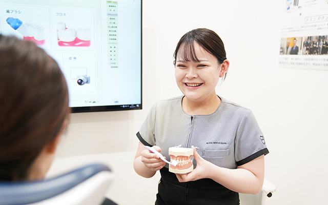 患者様個々のリスク評価をもとに、歯ブラシ指導・フロス指導・歯間ブラシ指導・食生活指導・フッ素指導などを行います。